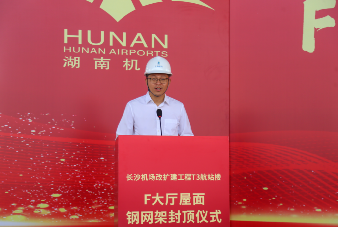 9月28日上午,由上海建科工程咨詢有限公司提供工程建設監理服務的湖南省“一號工程”長沙機場改擴建工程T3航站樓F大廳屋面鋼網架順利封頂。湖南省機場集團黨委書記、董事長邱繼興,黨委副書記、總經理崔武松,黨委委員、副總經理洪鑫,中建八局副總經理、華中分局黨委書記、局長徐建林及項目各參建單位相關負責人等出席封頂儀式。上海建科工程咨詢有限公司副總經理薄衛彪應邀出席儀式并致辭,華中事業部副總經理唐仲平等應邀出席儀式。