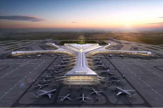 長沙機場改擴建工程是湖南省單體投資規模最大基礎設施項目,是湖南搶抓中部地區崛起戰略機遇,助力實現湖南“三高四新”美好藍圖的重要舉措。T3航站樓建筑整體呈五指廊向心造型,取意“長沙之星”,集“空運、高鐵、地鐵、磁浮、常規地面運輸”五位一體,是以“平安、綠色、智慧、人文”為建設理念的新一代四型機場,功能設施高效集約,中轉流程便捷。項目建成投運后可滿足年旅客吞吐量4000萬人次,將成為國內交通接駁方式最多、無縫換乘效率最高的現代化立體綜合交通樞紐。