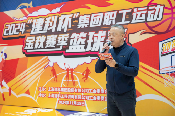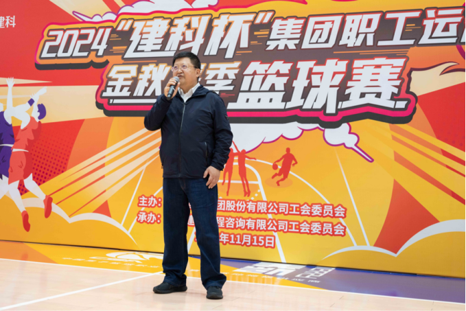 徐文為活動致辭,他充分肯定了本次籃球賽的精心組織,并特別向所有參賽隊員尤其是從全國各地遠道而來的隊員們表達了感謝。他希望全體參賽同事在比賽中盡情揮灑建科人的激情與活力,讓籃球這項運動不僅成為鍛煉體魄、增強體能的有效途徑,更成為促進團隊間緊密合作、深化默契的橋梁,共同為集團各項業務的蓬勃發展注入強勁動力。