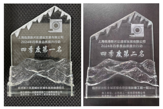 本次大會進行了品質提升行動表彰頒獎。上海建科咨詢參建的臨港新片區泥城社區浦東醫院臨港院區項目獲得年度第一名和四季度第一名,臨港新片區主城區綜合停保場新建工程一期項目獲得四季度第二名。