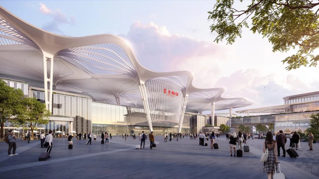 東方樞紐上海東站項目位于浦東新區(qū)祝橋鎮(zhèn)內(nèi),距離上海浦東國際機場T1航站樓約5公里。項目總建筑面積約138.7萬平方米,站場規(guī)模為15臺30線,規(guī)劃至2035年到發(fā)客流量6000萬,至2040年到發(fā)客流量8000萬人。作為國家沿海通道重要節(jié)點、上海四大主客站之一,東方樞紐上海東站不僅承擔著重要的國家鐵路功能,同時兼顧服務市域鐵路和航空功能,是集國家鐵路、市域鐵路、城市軌道交通及機場捷運等交通功能于一體的大型綜合交通樞紐。