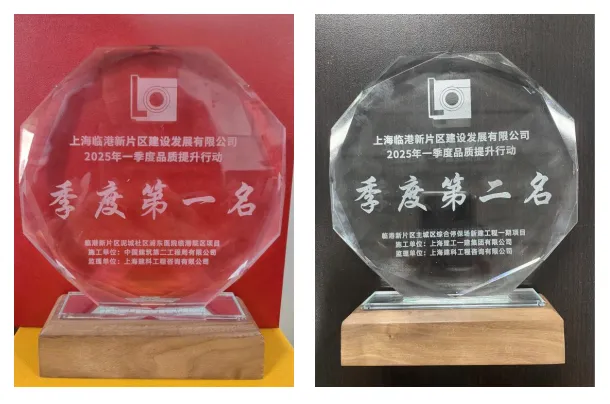本次大會進行了品質提升行動表彰頒獎。上海建科工程咨詢有限公司參建的臨港新片區泥城社區浦東醫院臨港院區項目獲得一季度第一名,臨港新片區主城區綜合停保場新建工程一期項目獲得一季度第二名。